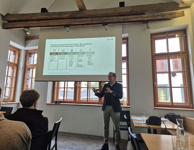 Besonders wertvoll waren die Präsentationstermine im Rahmen einer Roadshow mit Raum für Präsentation und Dialog mit den Stakeholdern – vorerst in Bludenz, im Klostertal und im Biosphärenpark Großes Walsertal. Dabei konnten wir ganz konkrete Zahlen auf den Punkt bringen. Sehr stimmig war u.a. die Location im Turnsaal in Klösterle ("Tourismus bewegt viel").